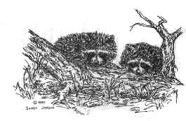 Back home again, I told my family of the macabre sight and everyone wanted to go see them. Down the trail we went until we reached a vantage point uphill to see into the treetop. "Where are they, dad?" asked my son. They were gone! The wind was blowing pretty good now and I thought perhaps the wind had blown the bodies down. I raced down the hill, knowing that at the base of the tree I would find the crumpled bodies of my raccoon brothers. "Where are they?" I asked myself. They weren't at the bottom of the tree either. Scanning the tree trunk, the answer came in a flash. I was elated! Here were the claw marks of two raccoons climbing back down the tree. The coons were fine and I, increasingly, began to feel like an idiot. How foolish I was! I had thought the worst of some people because of my ignorance. I hadn't yet learned that a warm sun in late winter is very tempting for animals to bask in after a long, cold season.