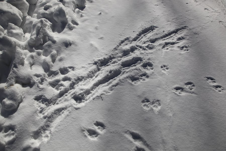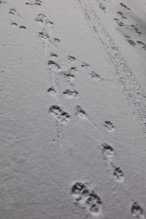 And here are fresh Wolf tracks, a male and a female, travelling down the side of the road.