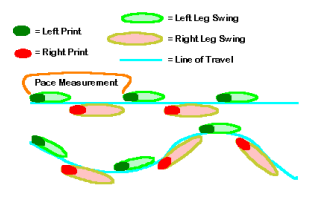 to the heel strike of the opposite foot. A pace is a series of two steps. A Left