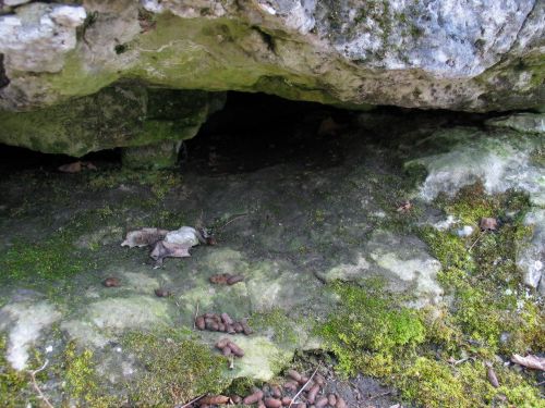 Porcupine den by the presence of porcupine scat immediately