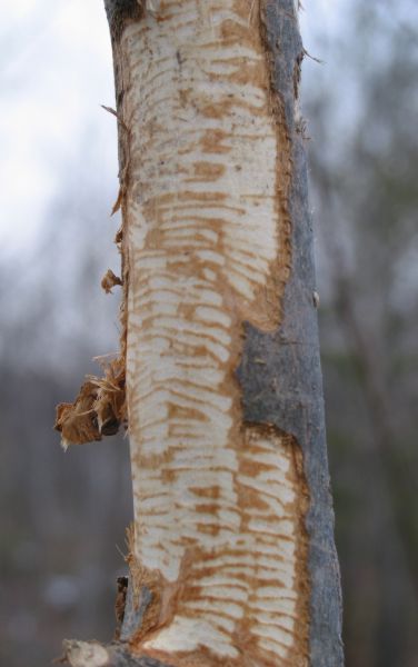 Here are the teeth marks of a porcupine. Notice the similarity