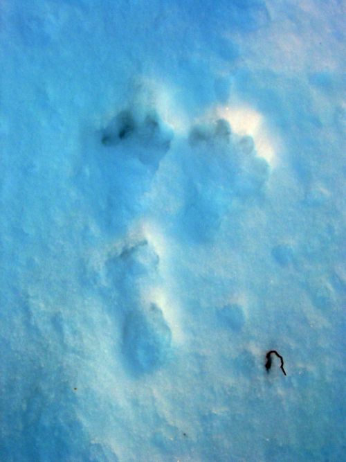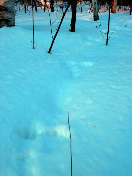 tracks in the snow.A sure way to tell them apart is illustrated in this photo.